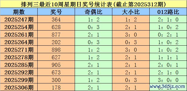 陈设三第2025306期(上周日曜日)奖号为178。其中奖号奇偶比为2:1,大小比为2:1,012路比为0:2:1。